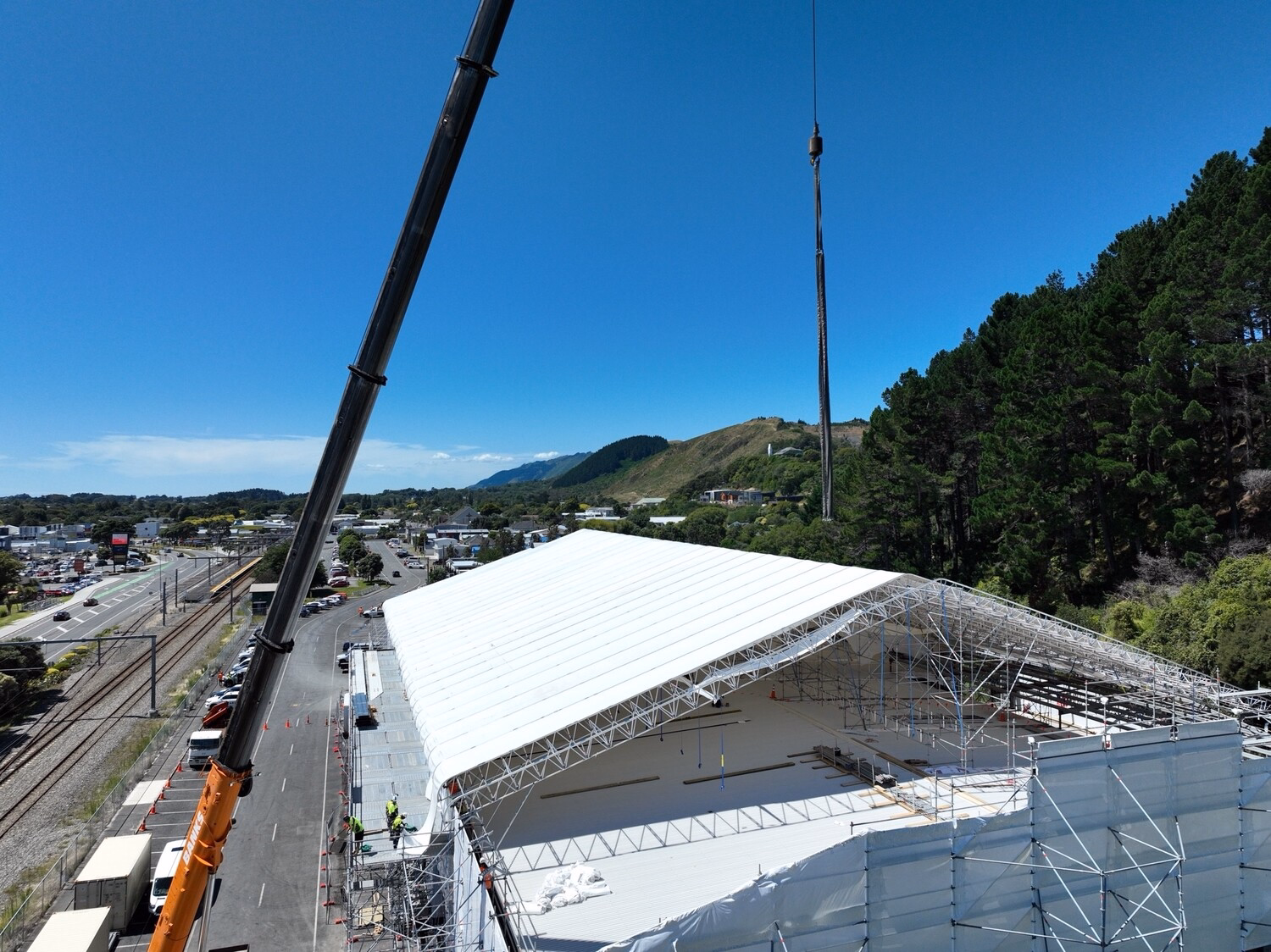 Last week we commenced removal of our temporary tent at All Secure Self Storage Ltd at Epiha St, Paraparaumu. Removal of the temporary roof is on schedule to be completed this week, including removal of the central propping towers that have supported the structure. With the propping being removed the interior works will now really open up enabling the project to be pushed to completion over the next two months.