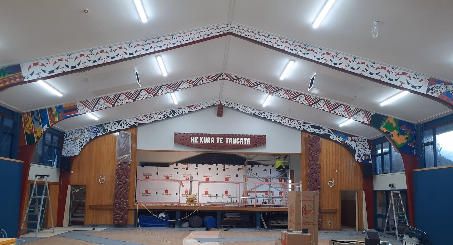 Another project almost complete; Te Kura Māori o Porirua gym hall upgrade. We’ve recently installed these panels of Māori art, created by the tamariki they really breathe life into this hall!