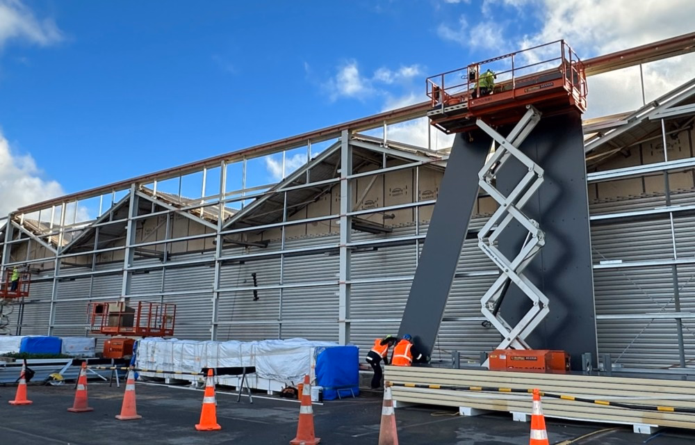 Cladding is now taking shape at the Wellington Airport Retail Park