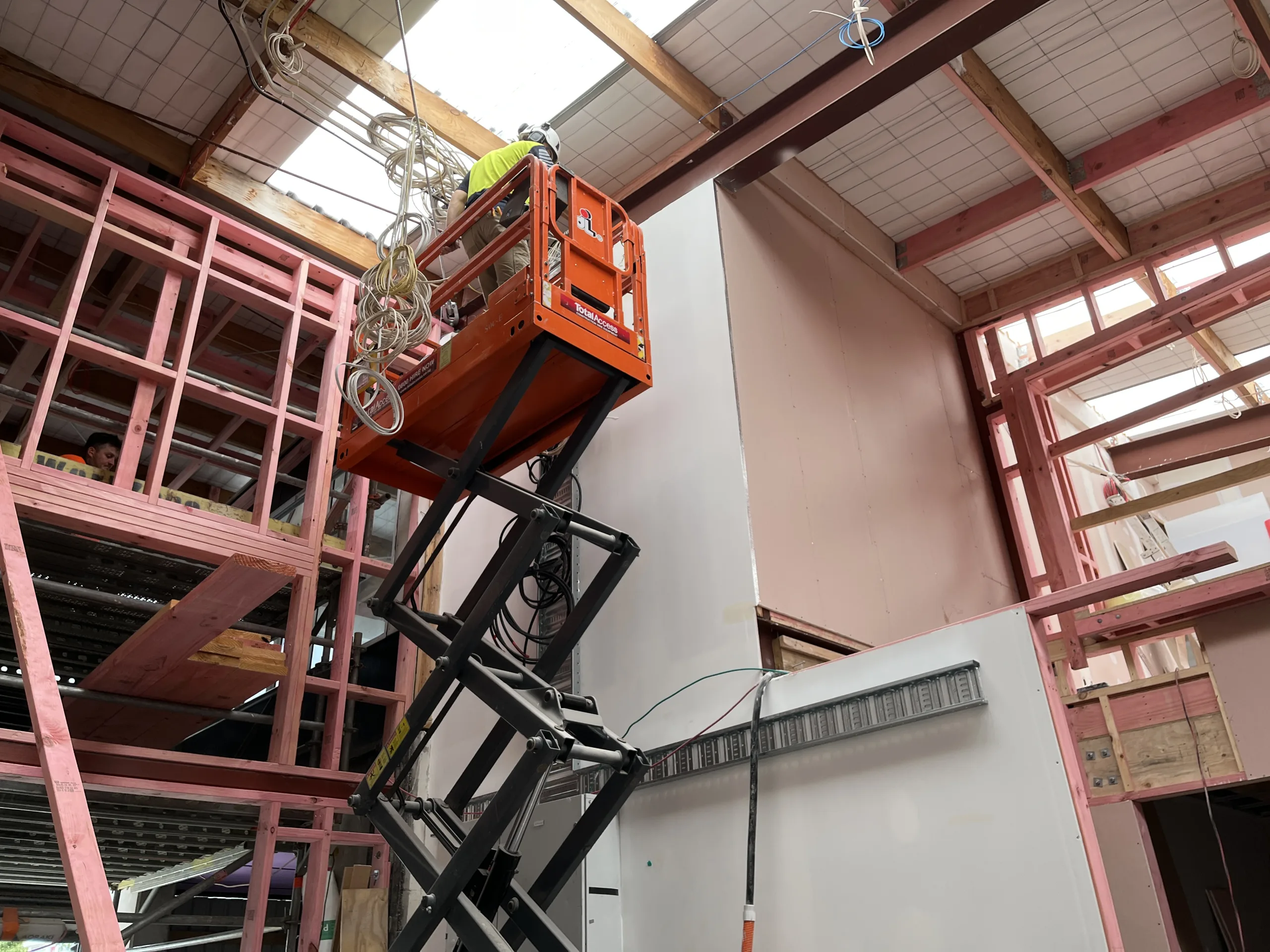 With a new roof overhead, a re-strengthened structure, and all internal framing wrapped up last year, the transformation on site is seriously gaining pace. First-fix services are now complete, linings are nearly finished throughout, and plastering is well underway. It’s already been a busy start to the year.