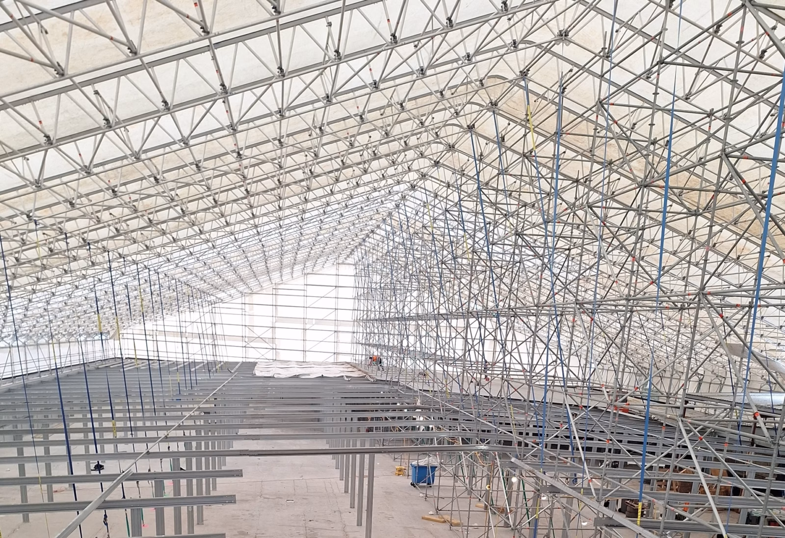 We have broken the project down into 4 areas to enable us to stage the works around the temporary tent and propping structure of this large (3,200m2 footprint) building. To give an idea of scale, we will be bringing in 30 tonnes of new structural steel into the building, and the long run roofing is coming in at lengths up to 25m long!