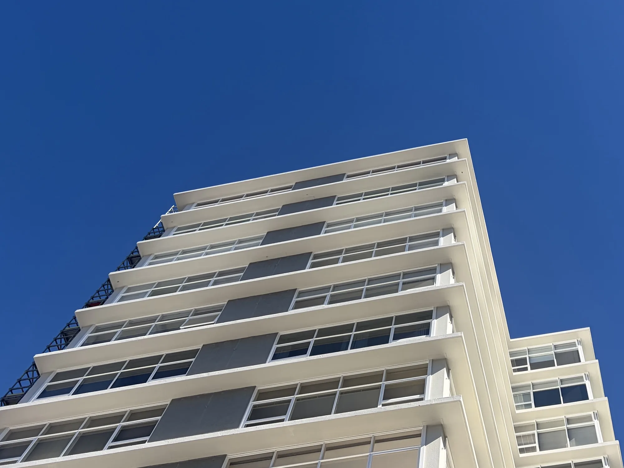 Our project at Herbert Gardens is a significant refurbishment and upgrade of an existing and iconic 13-storey apartment building at 186 The Terrace. Built in the 1960s, it is an example of mid-century modern architecture. Our scope of work includes asbestos removal, structural strengthening, weathertightness remediation and exterior improvements, and full fire safety and mechanical system upgrades.