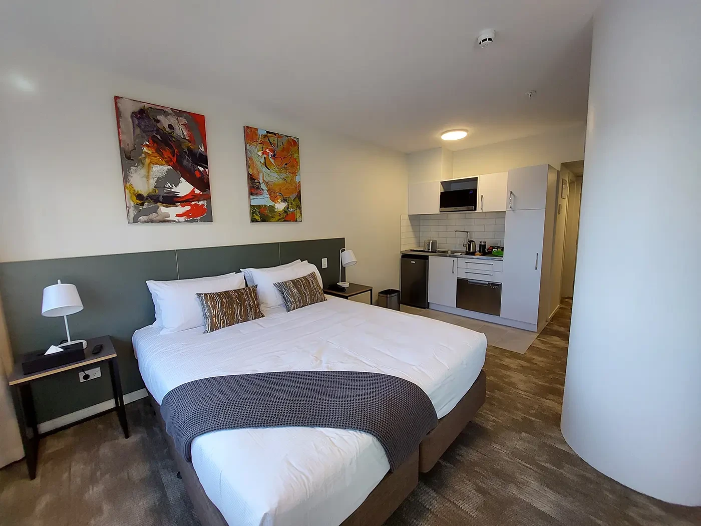 The end result is a boutique apartment hotel, each apartment containing fully tiled bathrooms, full width windows to allow for plenty of natural light and well designed acoustic and HVAC systems to create a comfortable environment for guests.