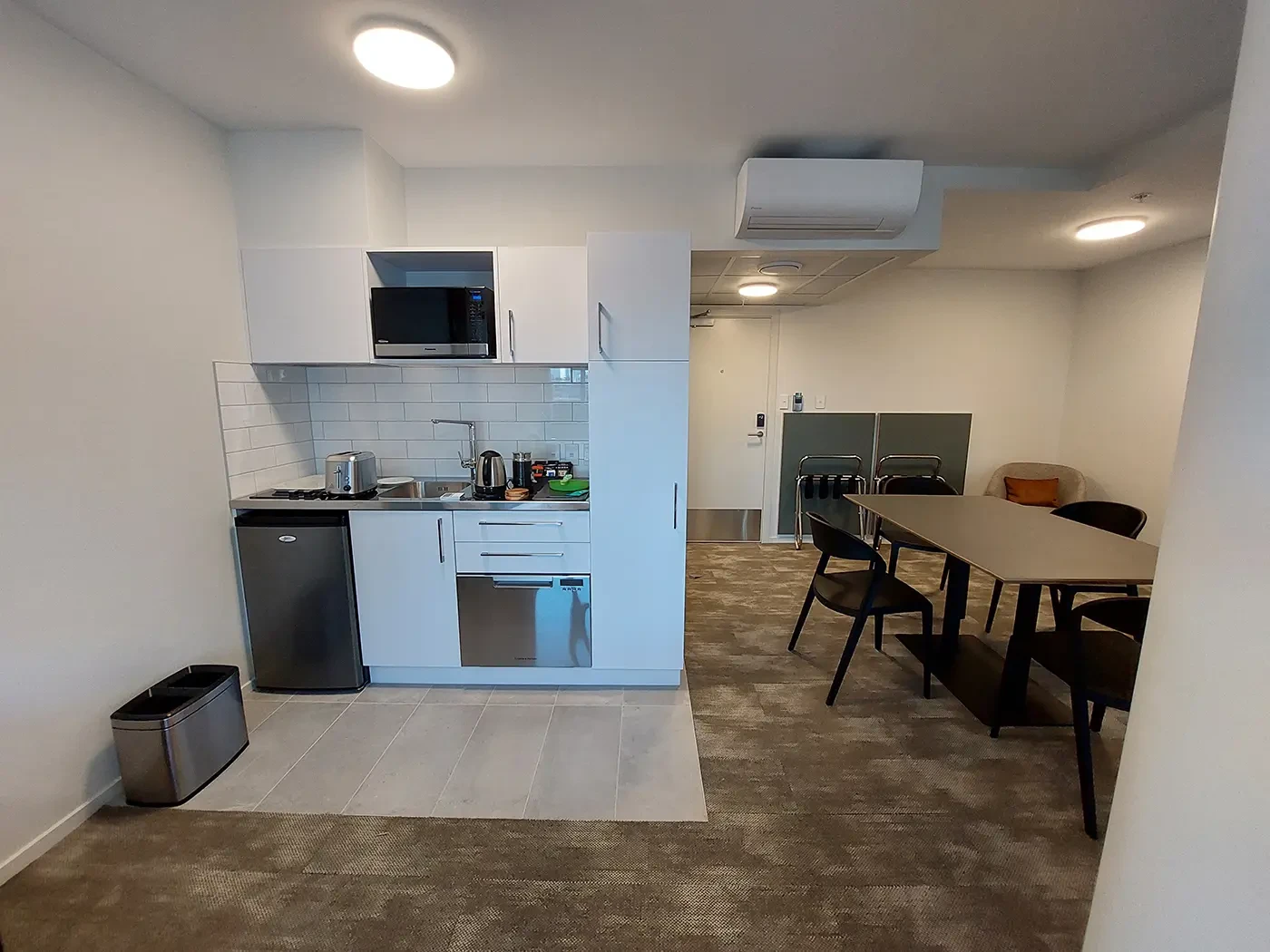 The internal retrofit across all floors involved converting the ground floor into a main reception area, lift lobby, and accessible apartment, with the remaining 8 levels containing apartment rooms, storage, and staff facilities. Services were upgraded, as was the lift and lift-car.
