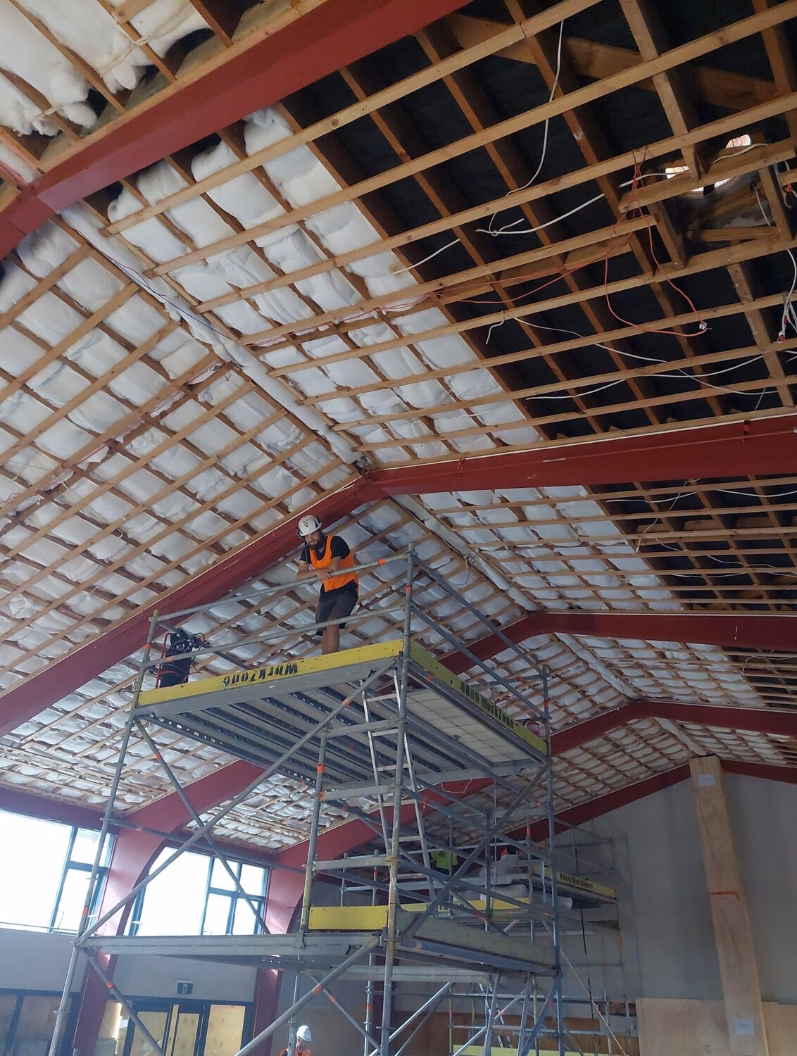 The interior works include new GIB ceilings and acoustic ceiling tiles over the structural ply diaphragm, and new toilets, universal bathroom and hall foyer. As with many school projects, this will also involve the removal of asbestos before any other construction work can be undertaken, something which we are well versed in.
