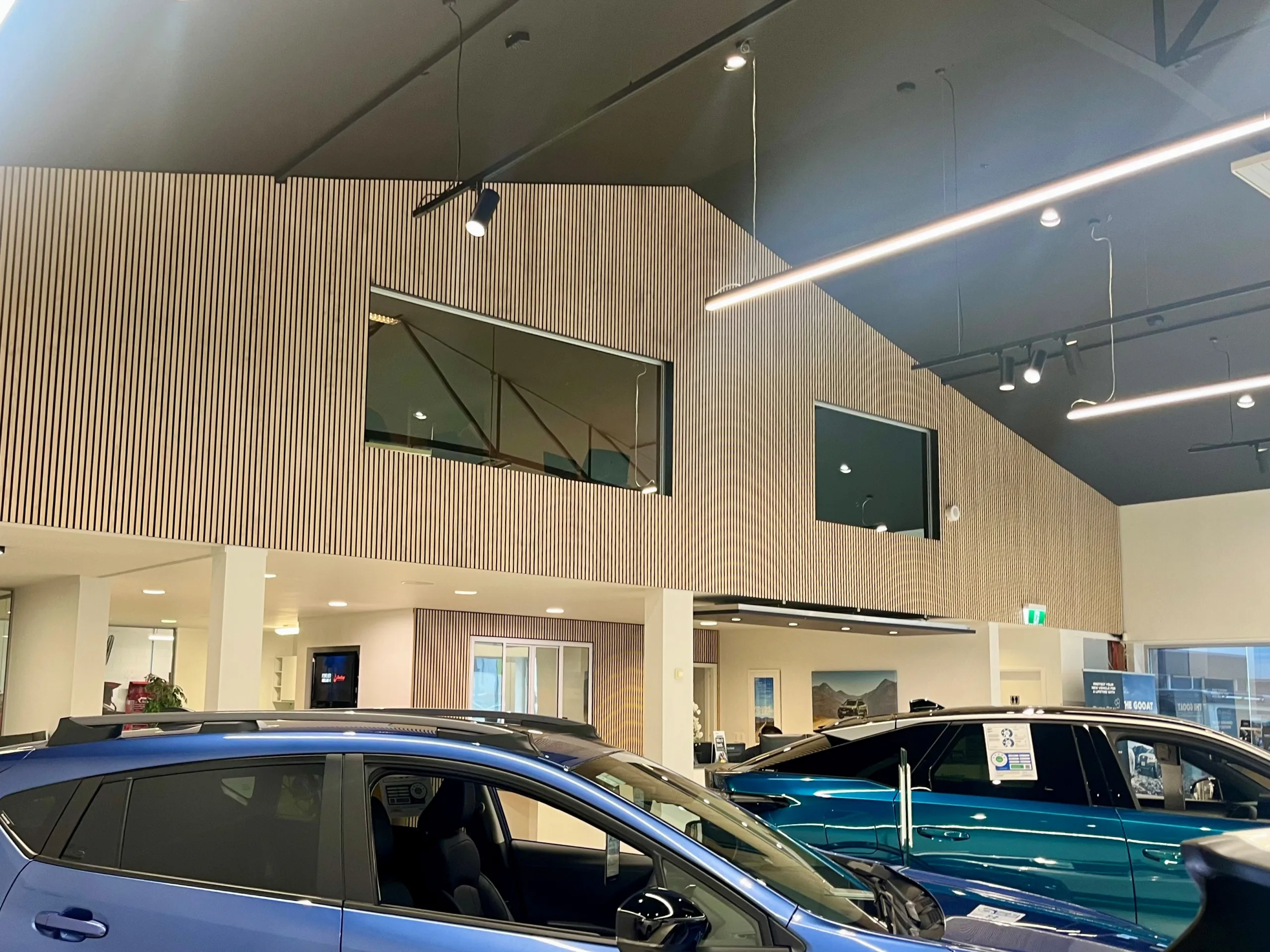 The works included new mezzanine windows, a sleek black ceiling and painting re-fresh throughout, new track and strip lighting to highlight the cars, and a big feature batten wall to finish it off. A huge thank-you to the Armstrong’s team for their cooperation, and to our amazing subcontractors, who had all hands on deck and pulled it all together seamlessly.